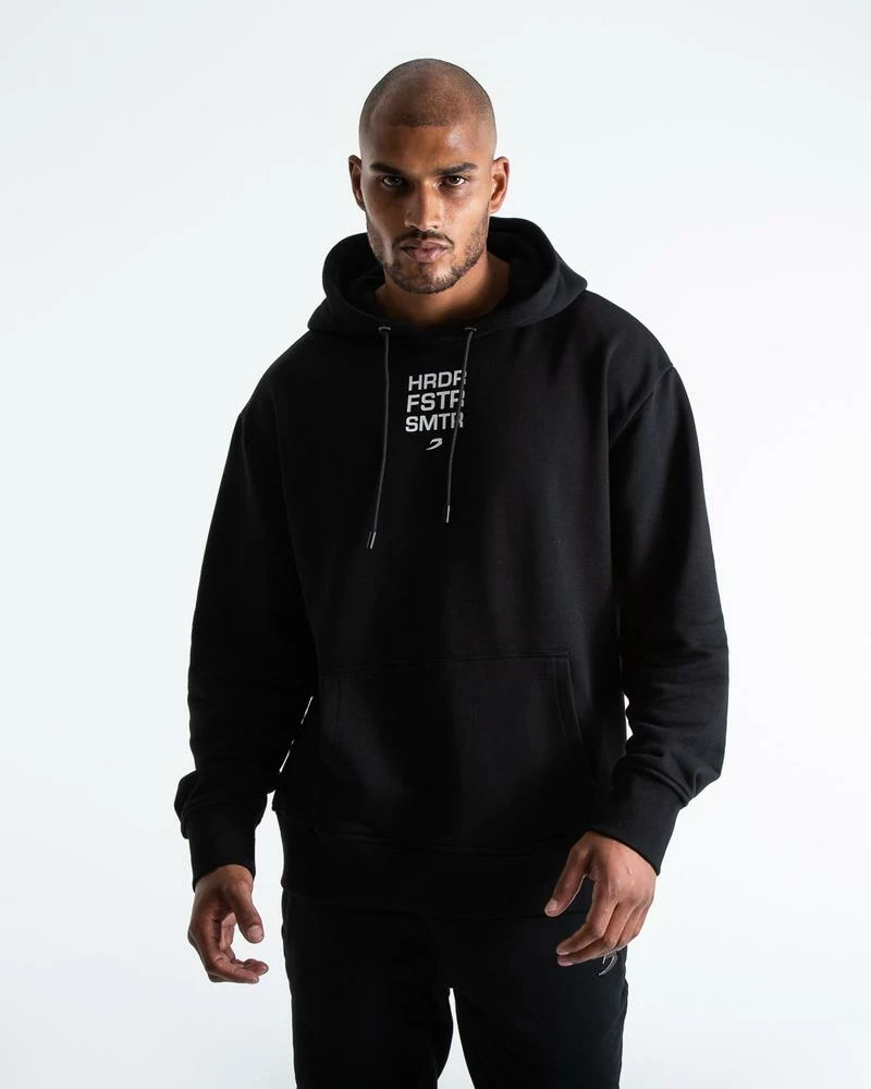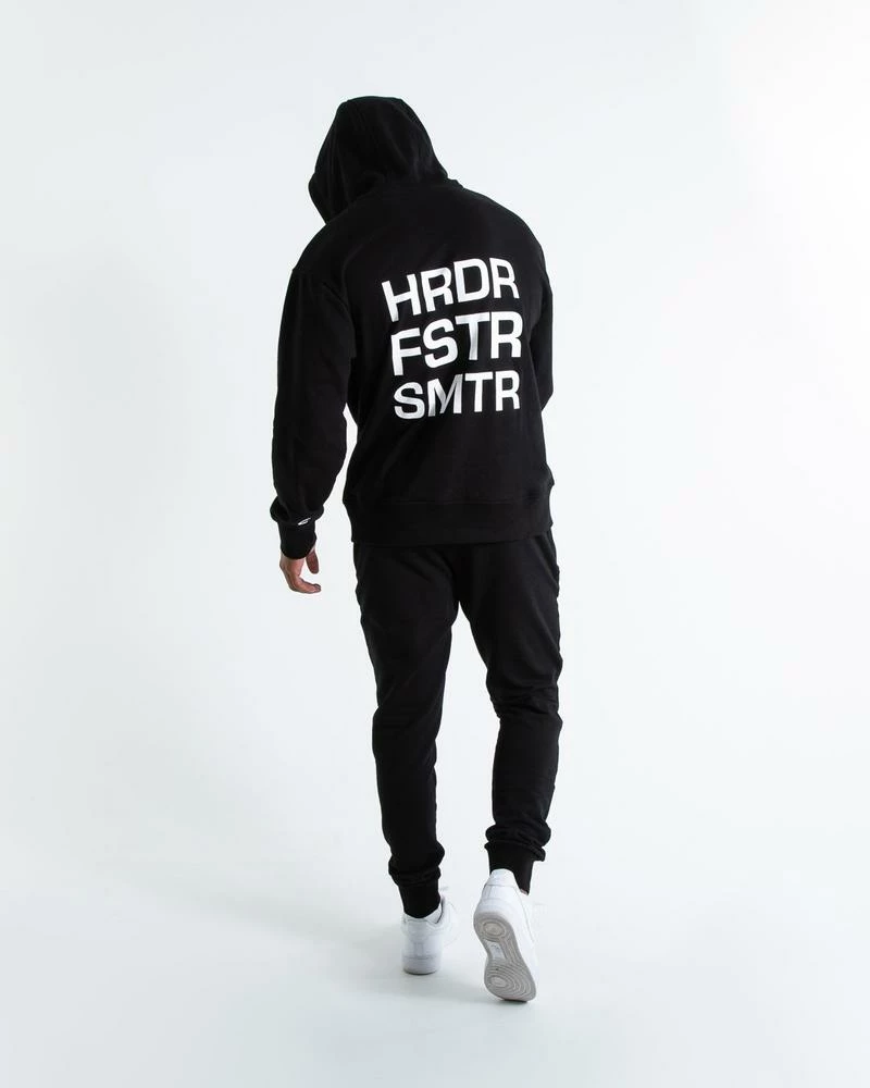 The HRDR FSTR SMTR Unisex Hoodie features our signature slogan, serving as a reminder to work harder, think faster and fight smarter, in all that you do. Crafted with durable anti-piling knit and designed for a relaxed fit, comfort and style are seamlessly blended. Concealed functionality is provided with a patented hidden zipped pouch pocket.
