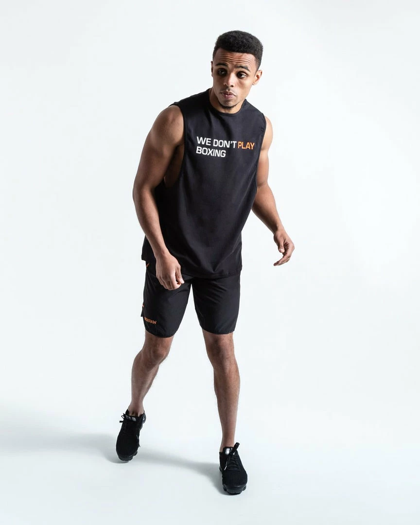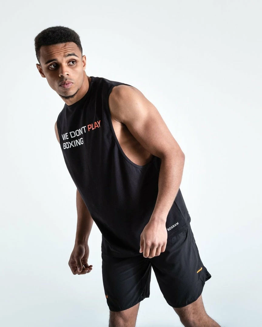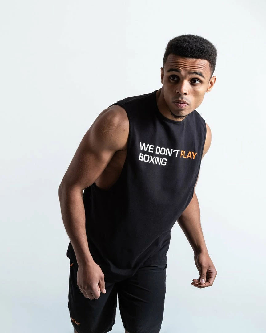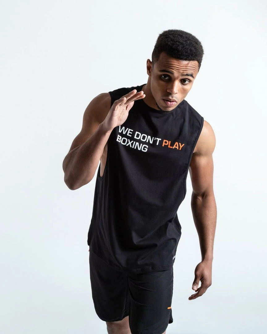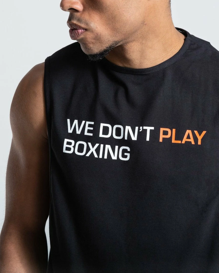 This stretch cotton muscle tank features our signature We Don’t Play Boxing® slogan. If you know, you know – you can play football, basketball and baseball, but you can’t play boxing. The relaxed fit makes easy work for the most intense bag workouts where airflow is essential.