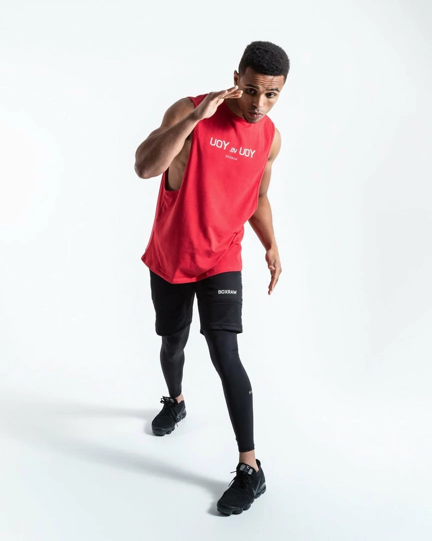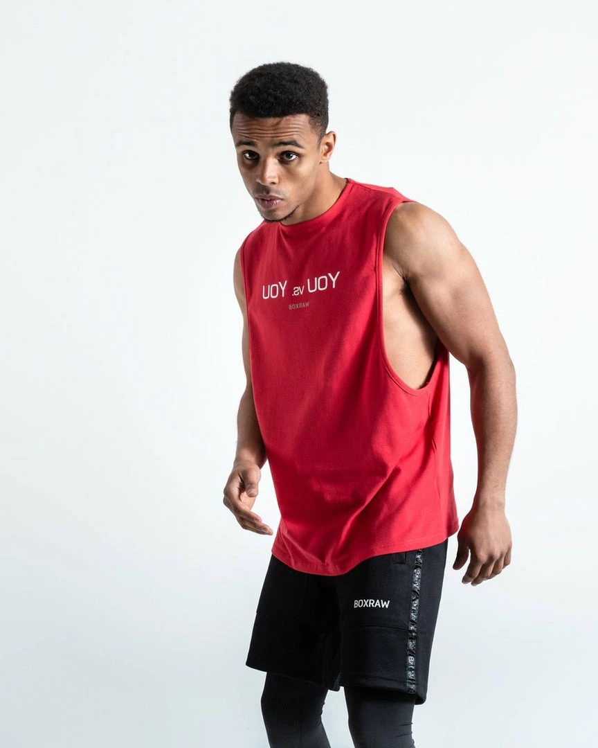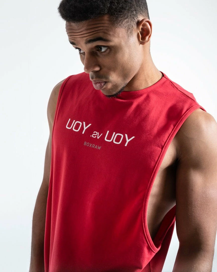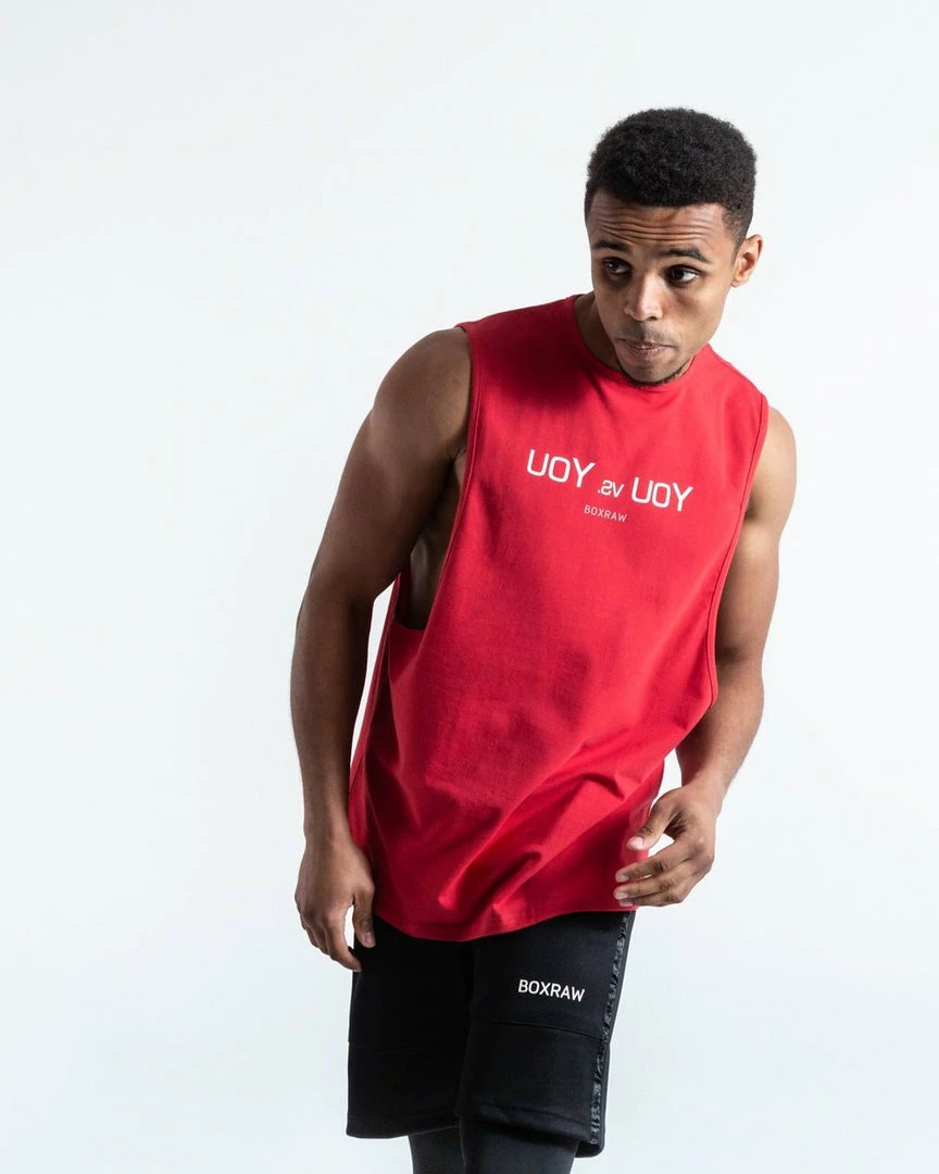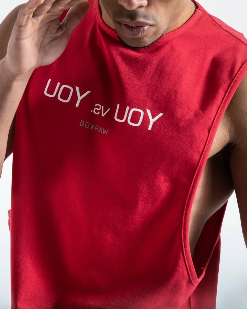 This stretch cotton muscle tank features our signature uoY .sv uoY® slogan which can only be read when looking in the mirror. A personal reminder that the only competitor that truly matters is the one that lies within. The relaxed fit makes easy work for the most intense bag workouts where airflow is essential.Â