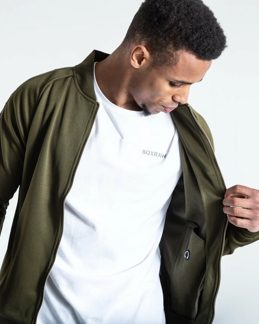 Crafted from the finest cotton blended interlock, this bomber jacket is both functional and comfortable. Complemented with subtle rose gold detailing. The signature BOXRAW taping gives you that understated look, while the hidden headphone hole makes them practical for everyday use.