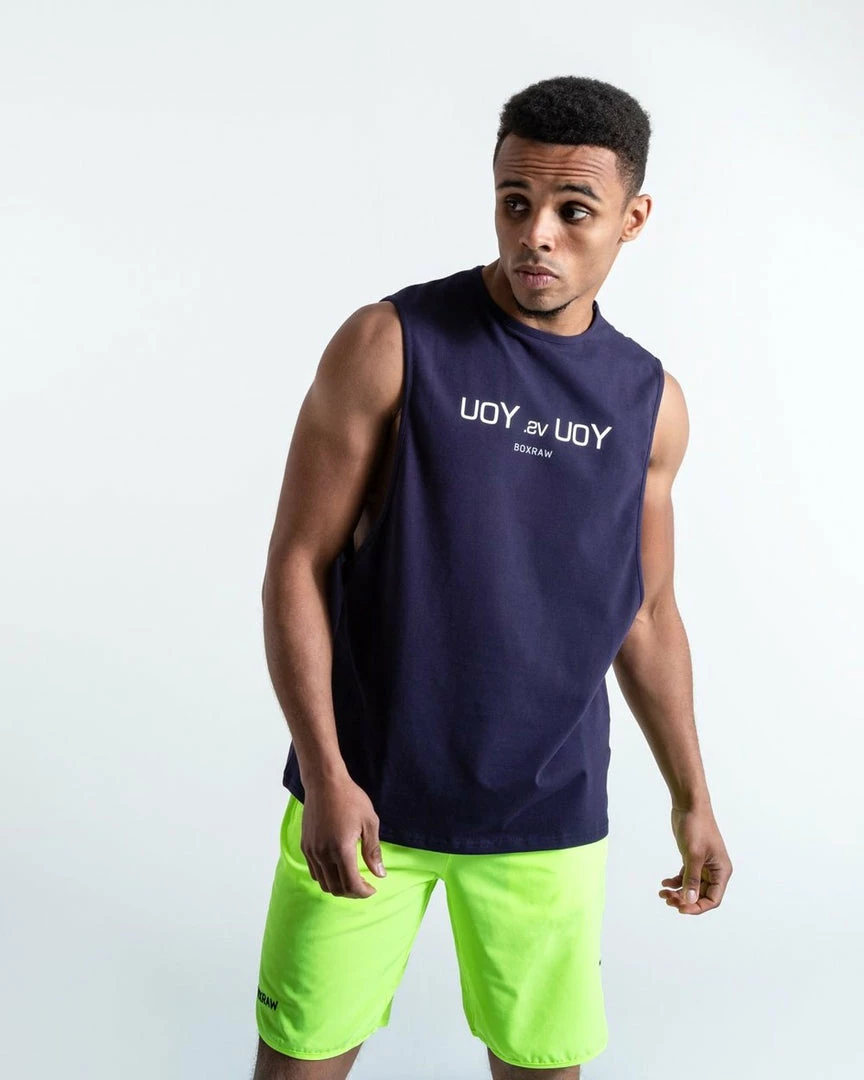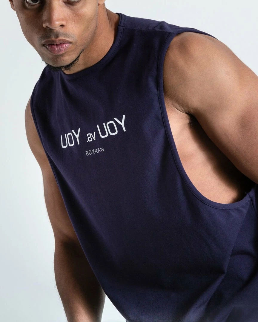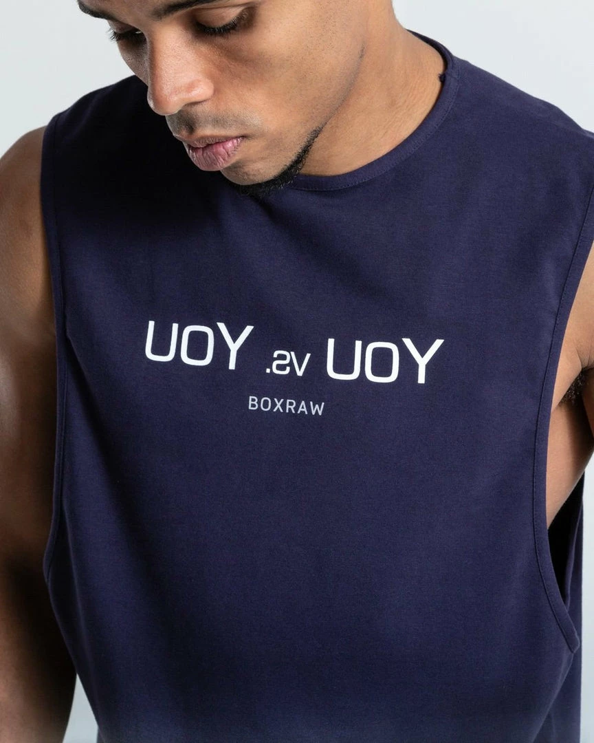 This stretch cotton muscle tank features our signature uoY .sv uoY® slogan which can only be read when looking in the mirror. A personal reminder that the only competitor that truly matters is the one that lies within. The relaxed fit makes easy work for the most intense bag workouts where airflow is essential.Â
