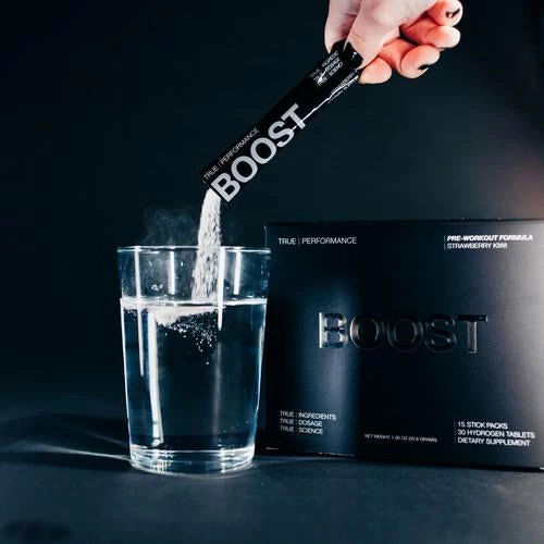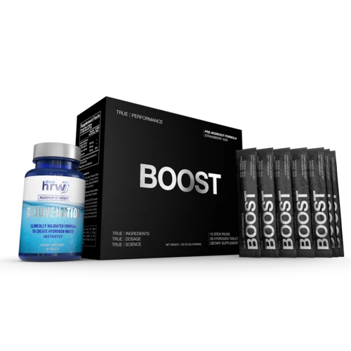 BOOST is the world’s first product to combine Nitrosigine (a nitric oxide booster), Drink HRW tablets (molecular hydrogen), and caffeine. These pre-workout performance ingredients have been scientifically-validated to enhance perceived energy, focus, endurance capacity, high-intensity output, and muscle recovery.