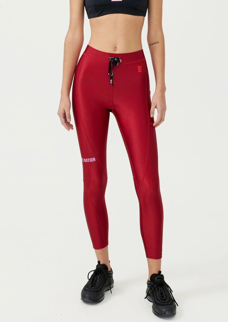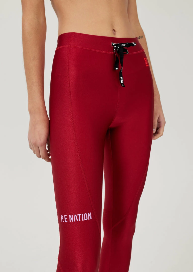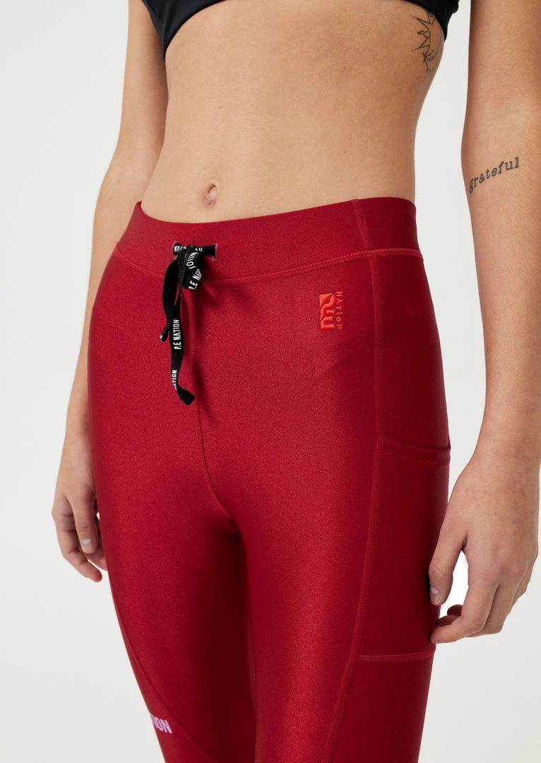 The Best Play Legging in Chilli comes as part of the Stand Tall, Together Collection. Cut from a matte-shine metallic fabrication with squatproof coverage and premium stretch and recovery, the Best Play Legging features built-in waistband support, curved leg panelling and a small pocket on the upper leg for essentials. With a rich red hue, P.E Nation logo on the thigh and embroidered P.E Nation logo at the hip, this high rise, 7/8 length legging is complete with laser-cut perforations on the lower leg for style and breathability. Pair it with the Best Play Long Sleeve Top for a retro-sport look.