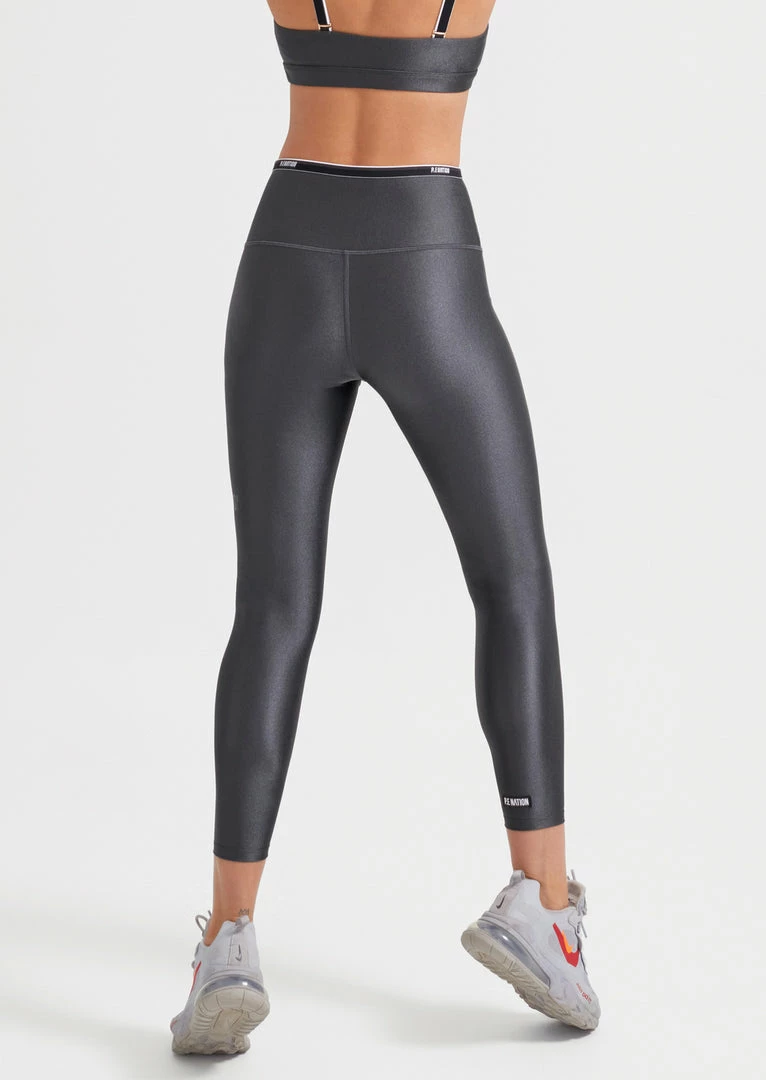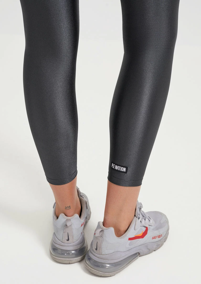 The Fadeaway Legging in Charcoal comes as part of the Work It Downtown Collection. A high-rise 7/8 length legging in a statement dark grey hue that can be worked into all monochrome looks, the Fadeaway Legging is cut from a squatproof performance fabrication with a shiny silky finish and ultra-luxe look. Minimal logo detailing, including a P.E Nation branded elastic at the waistband and muted P.E Nation print on the thigh and ankle complete this comfortable and covetable essential.