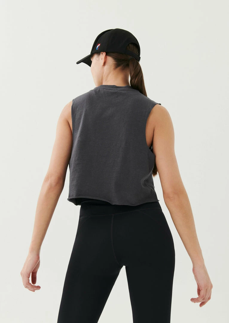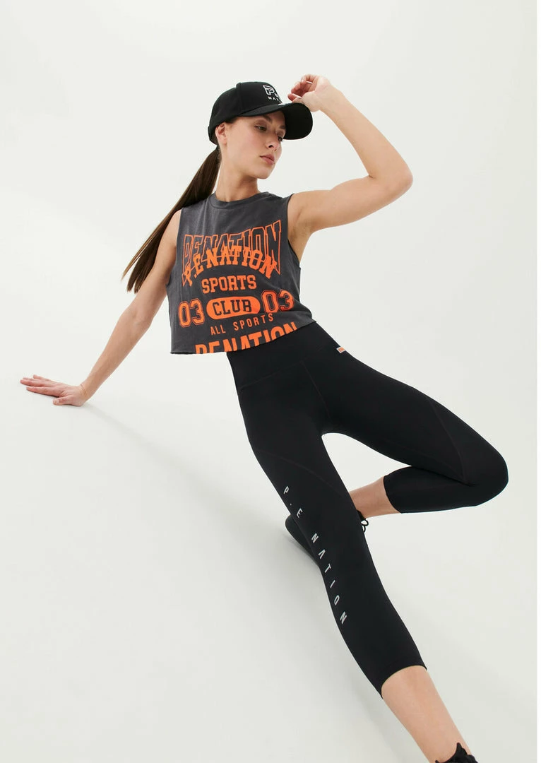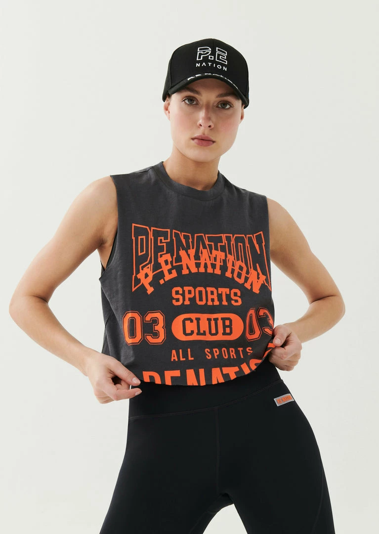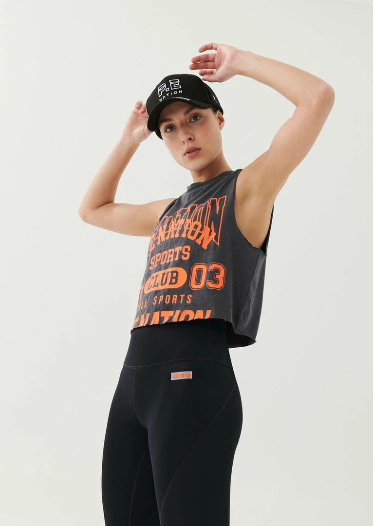The Game Card Tank in Charcoal comes as part of the Stand Tall, Together Collection. A relaxed fit crew neck style, this cropped tank features a raw cut hem for easygoing appeal. With a soft pink shade contrasted with bright varsity-style P.E Nation logo graphics at front, the Game Card Tank is cut from an organic cotton and hemp blend fabrication for a vintage look and feel that develops over time with wear and care. Match it back with the Super Set Legging on active days.
