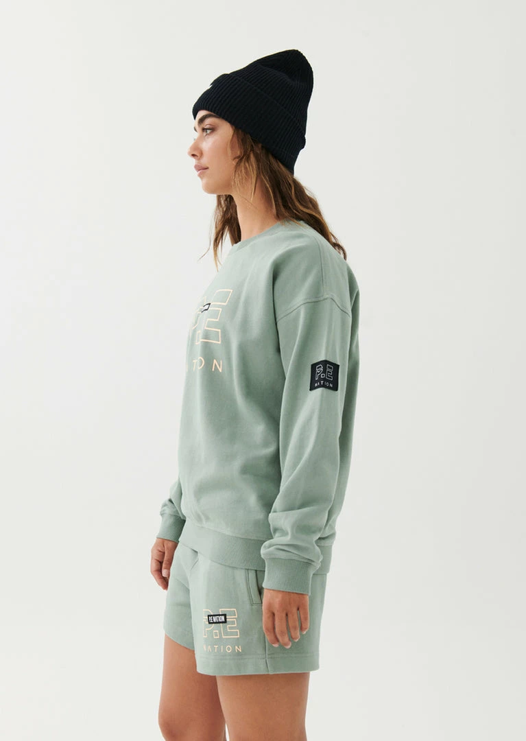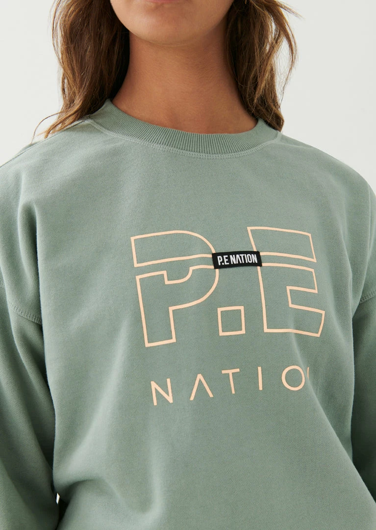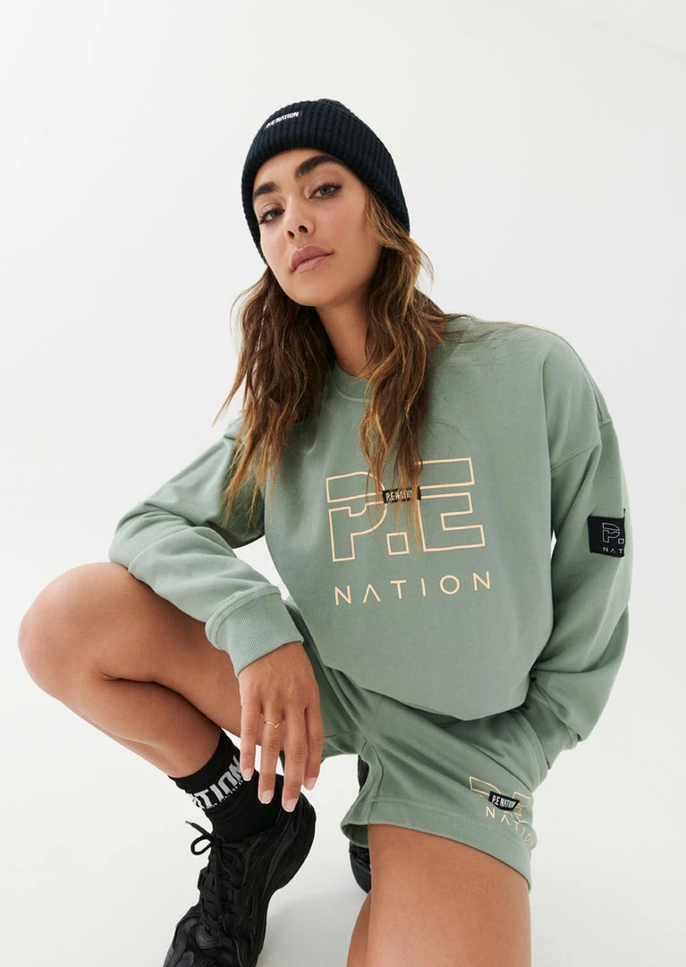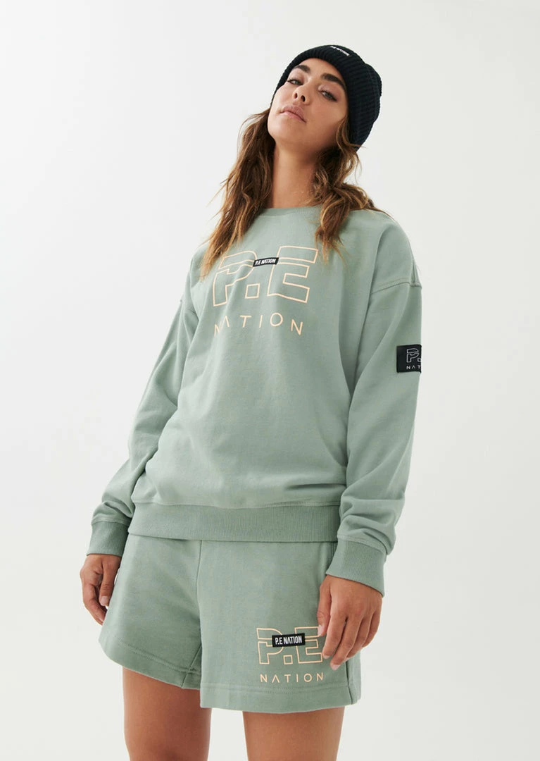 The Heads Up Sweat in Iceberg Green comes as part of the Colour Up Collection. Add a calming colour pop to your everyday look. A relaxed fit, easy-to-wear crew neck sweater, the Heads Up Sweat is an activewear staple, with a large P.E Nation logo and heat press patch centre front, and woven recycled patch on the sleeve, for a seamless addition to off-duty fits. A comfortable, relaxed fit is met with a super-soft feel, cut from midweight 100% organic cotton French terry. A perfect pick for all-day reliability and comfort, and an essential pre-and post-training layer. Wear it with the Stadium Short or Grand Stand Legging for a complete look.