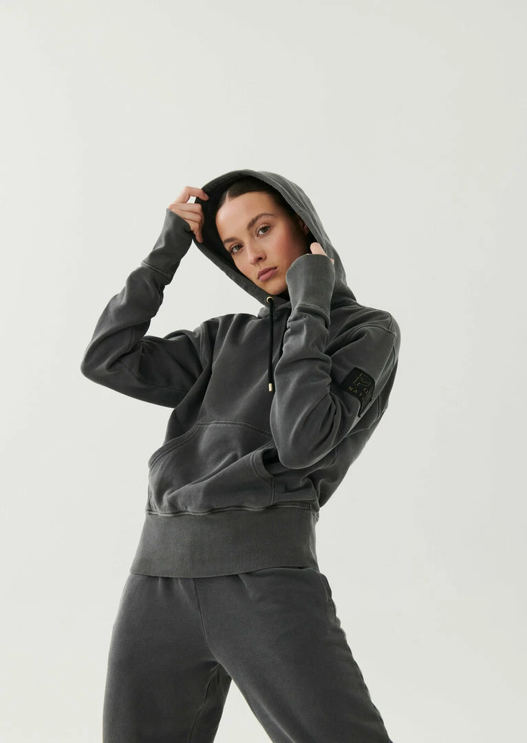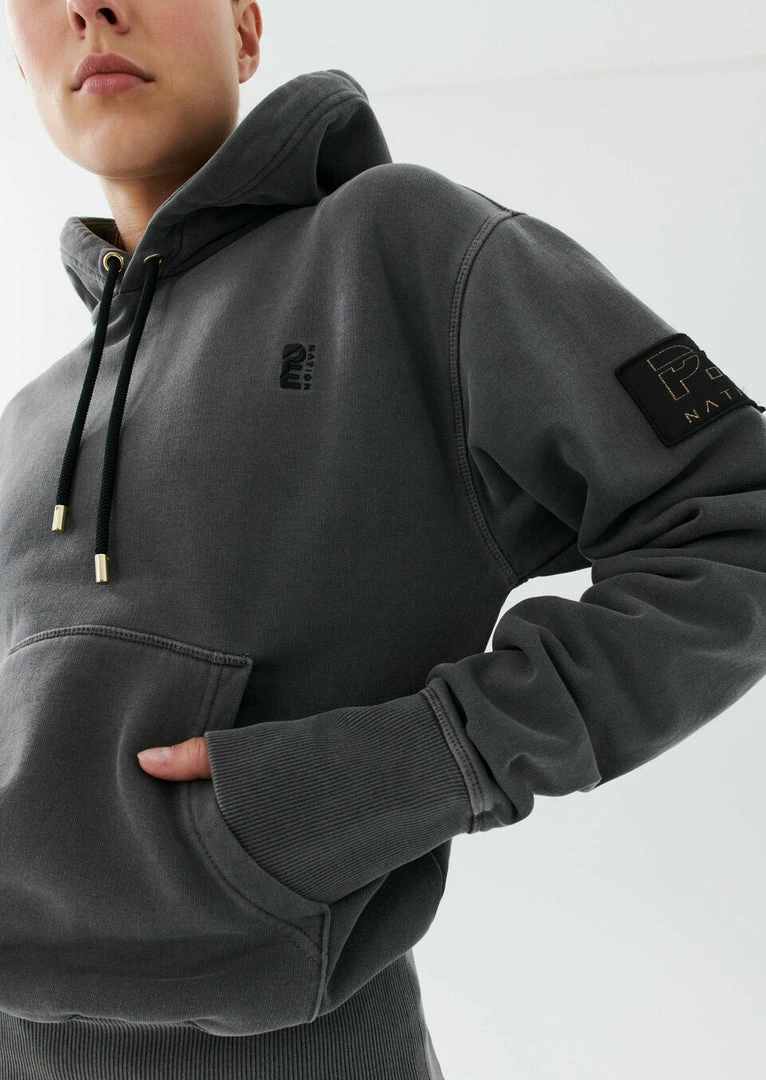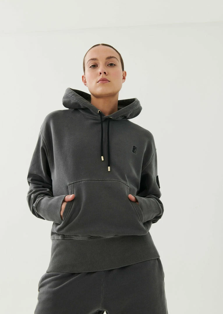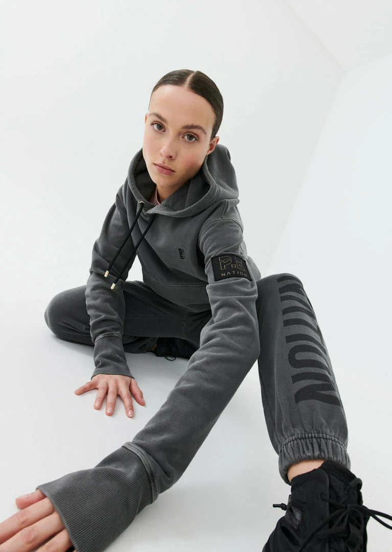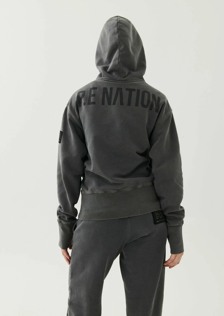 The Mid Game Hoodie in Charcoal comes as part of the Stand Tall, Together Collection. A fitted midlength hoodie in heavy weight fleece fabrication, the Mid Game Hoodie is garment-dyed for a subtle worn-in vintage look that adds to its streetstyle appeal. Featuring longline cuffs and hem, with a generous hood and functional drawcord, the hoodie is complete with a pouch pocket at front and P.E Nation logo across the shoulders at back. Team it up with the Mid Game Trackpant for an elevated off-duty fit.
