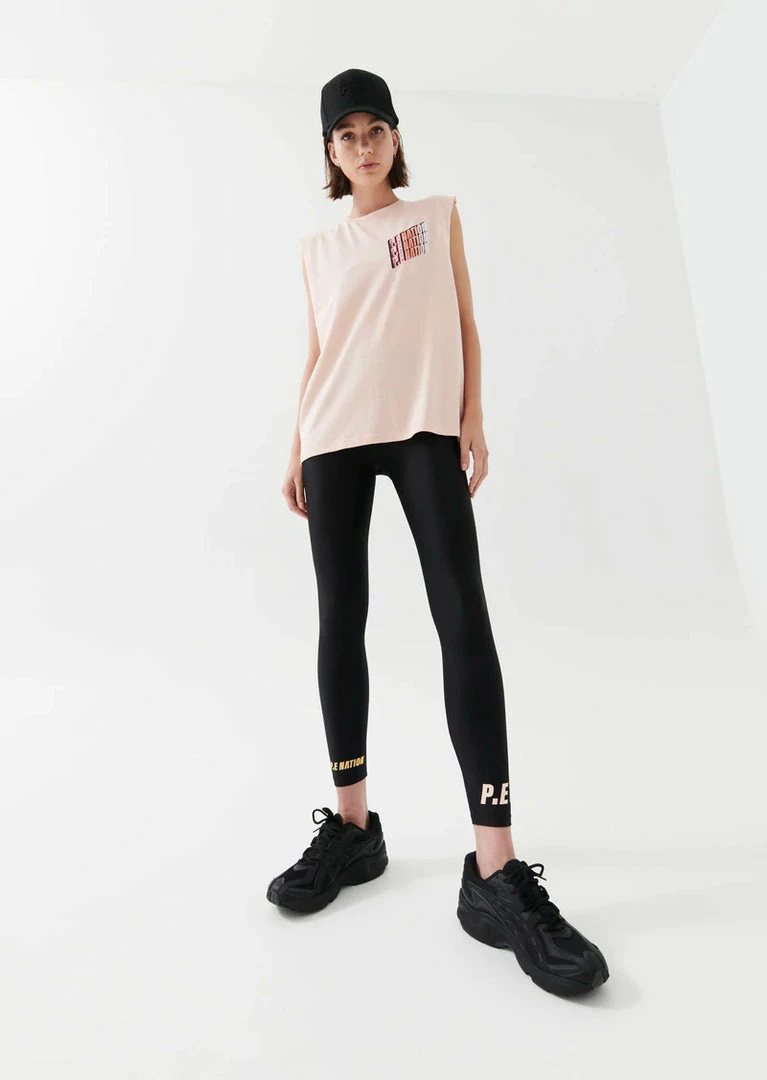 The Overtake Tank in Candy comes as part of our It’s All In Me Collection. A relaxed fit tank with soft fine rib crew neck and raw cut armholes, the Overtake is an easy over-studio set layer for transitions between workouts and all through the day. Cut from an organic cotton and hemp blend fabrication, the Overtake Tank has a vintage tee vibe and texture that develops further over time with wear and care. A statement P.E Nation triple logo in gradient detailing completes the tank. Team it with the High Press Legging, Fluid Short or Double Under Legging.