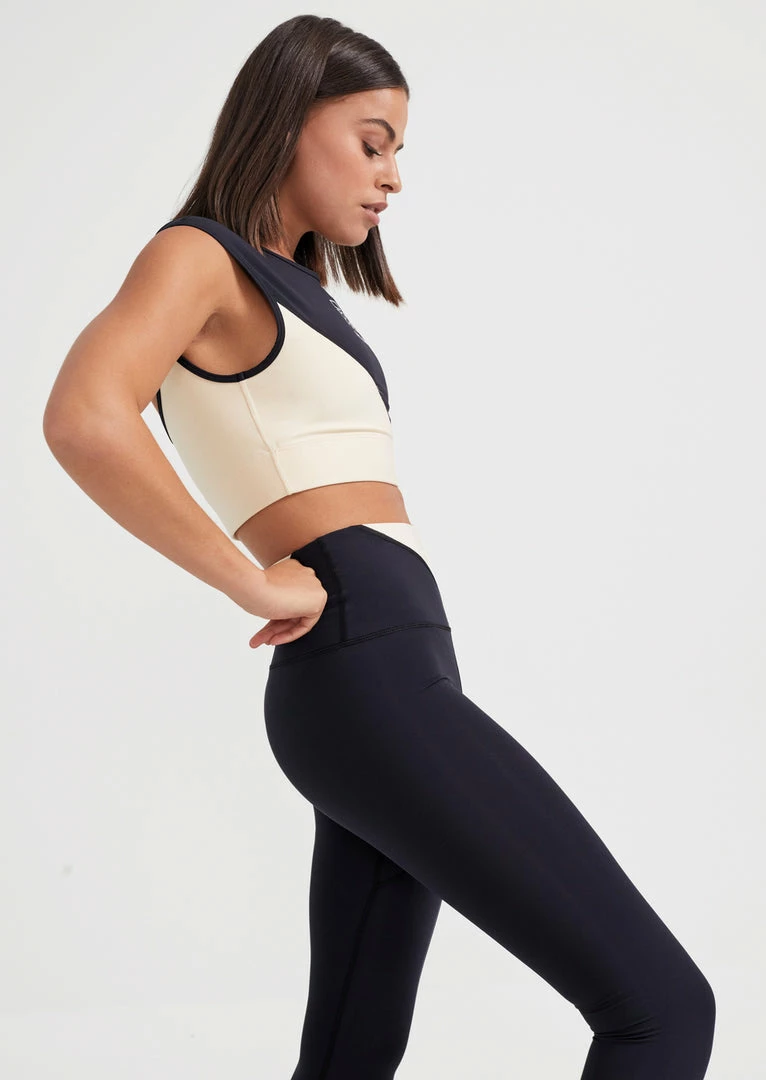 The Stability Sports Bra in Black comes as part of the Work It Downtown Collection. With its minimalist colour palette and elevated design with a flattering keyhole cut across the shoulders, the Stability Sports Bra is a premium training piece. Featuring a high scoop neck shape, with capped shoulder sleeves and diagonal contrast panelling across the front and back, this is a great studio style for low-intensity training sessions. Pair it with the Stability Legging and Stability Puffer Jacket for a complete P.E look.