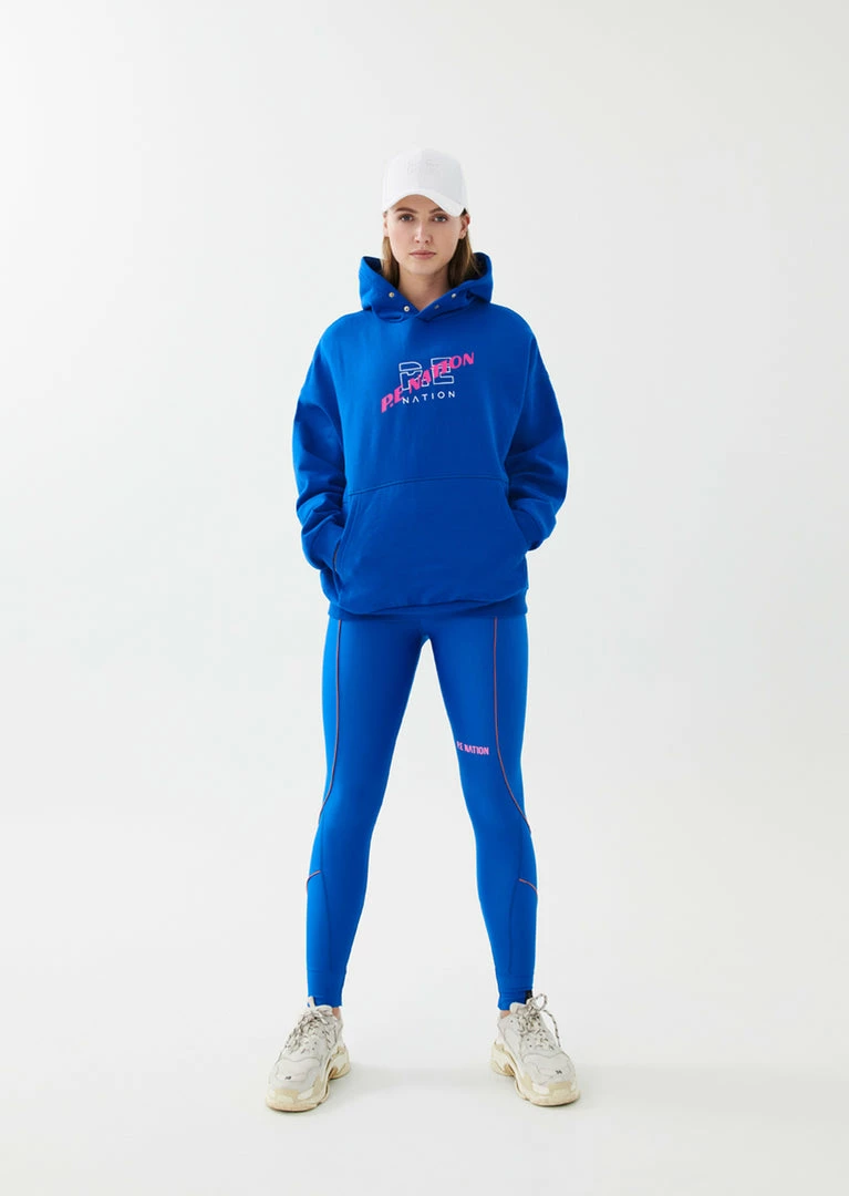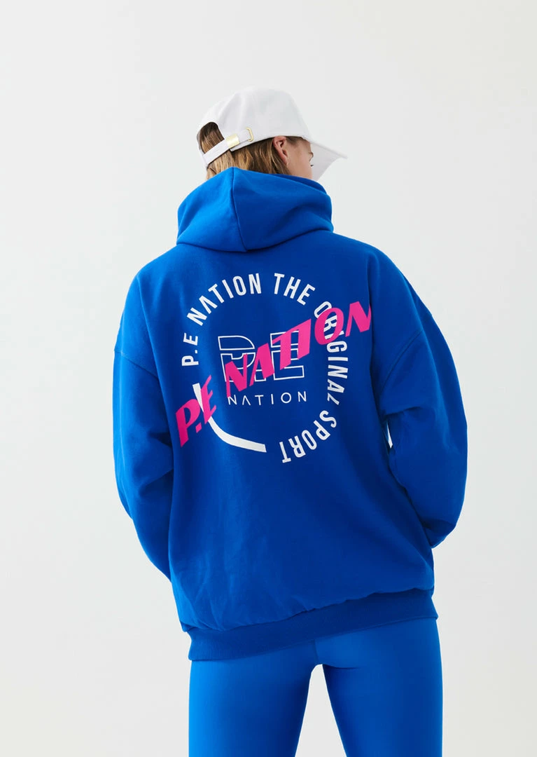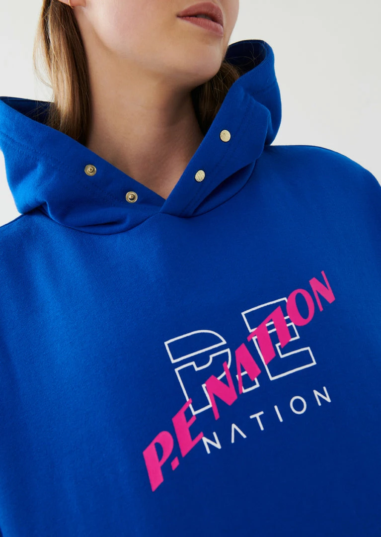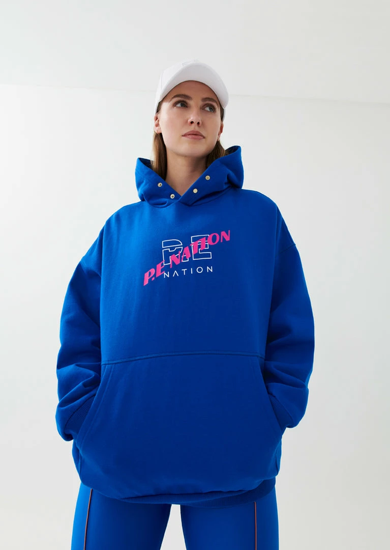 The Victory Hoodie in Electric Blue comes as part of the Colour Up Collection. An oversized fit style with a pouch pocket on the front, the Victory Hoodie features an easy-to-wear drop shoulder for a comfortable, standout street-style piece. A contrast double P.E logo sits at the front of the hoodie, with a larger P.E double-colour graphic at the back that makes a signature P.E statement wherever you go. Gold-plated press studs at the hood give it an individual element, elevating this everyday style further. Match it up with the High Dive Pant on off-duty and recovery days, or the Check Mark Short for a vibrant colour clash on active days.