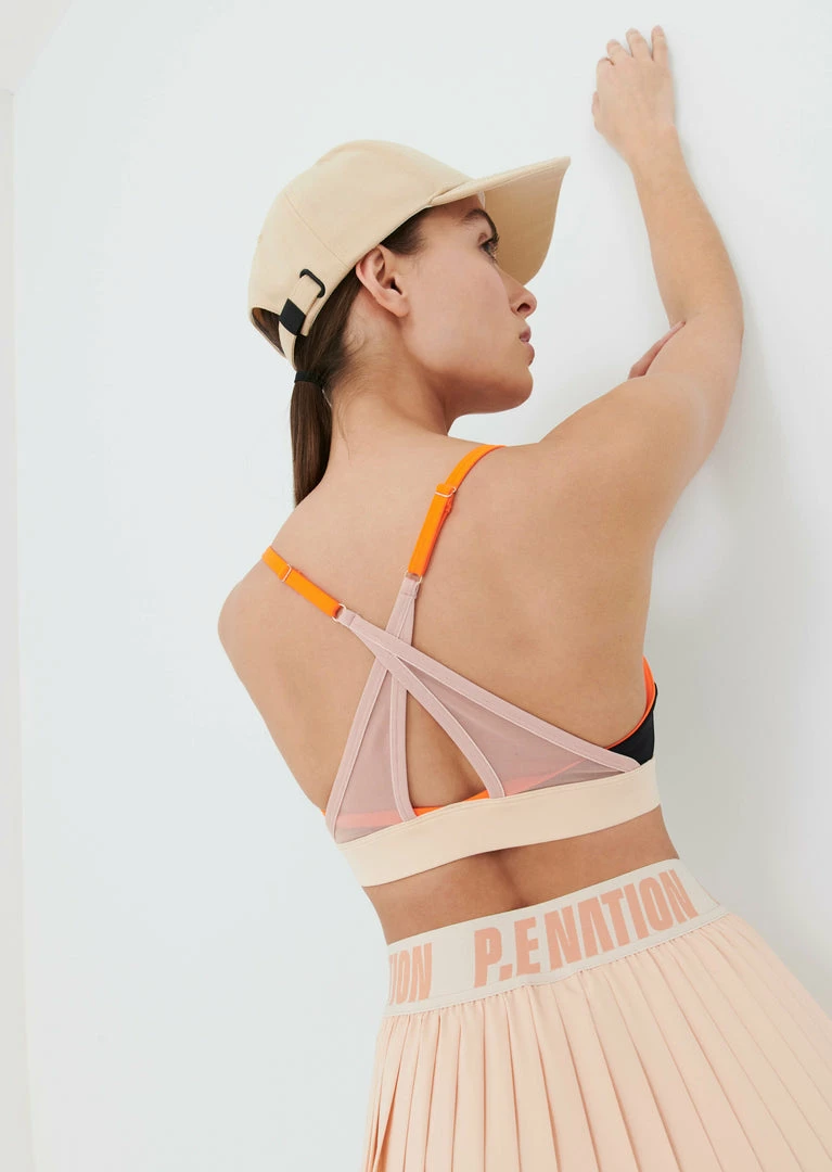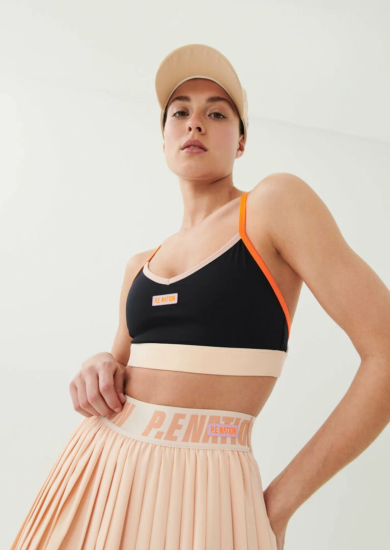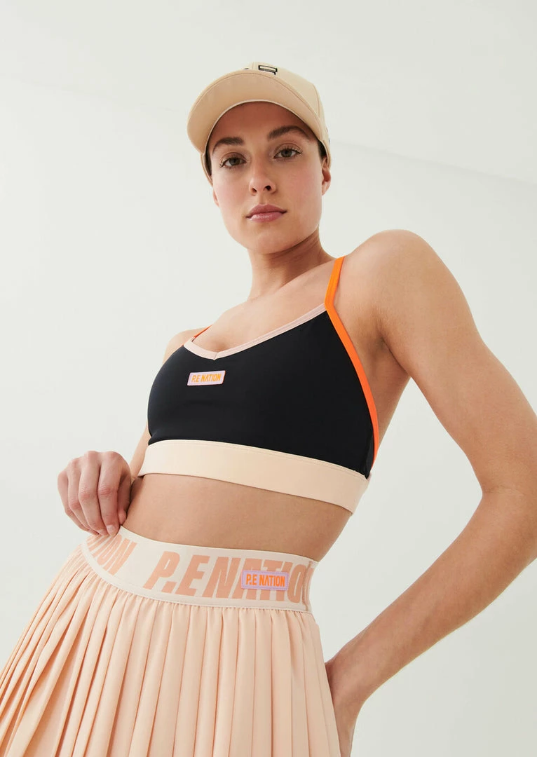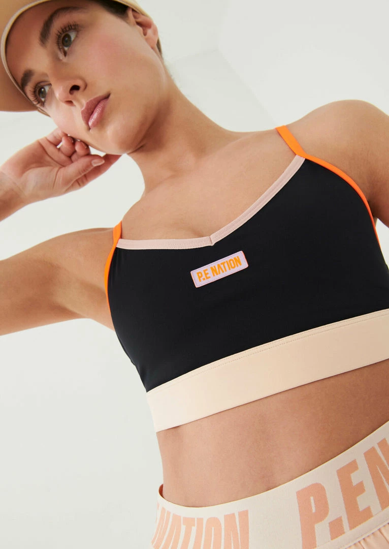 The Game Card Sports Bra in Black comes as part of the Stand Tall, Together Collection. A v-neck crop style with elasticated waistband and adjustable fabric and mesh straps, the Game Card Sports Bra is perfect for low-medium impact activities. Featuring contrast elastic waistband, contrast binding and a P.E Nation logo patch centre front, pair it up with the Infield Legging for a complete performancewear outfit.