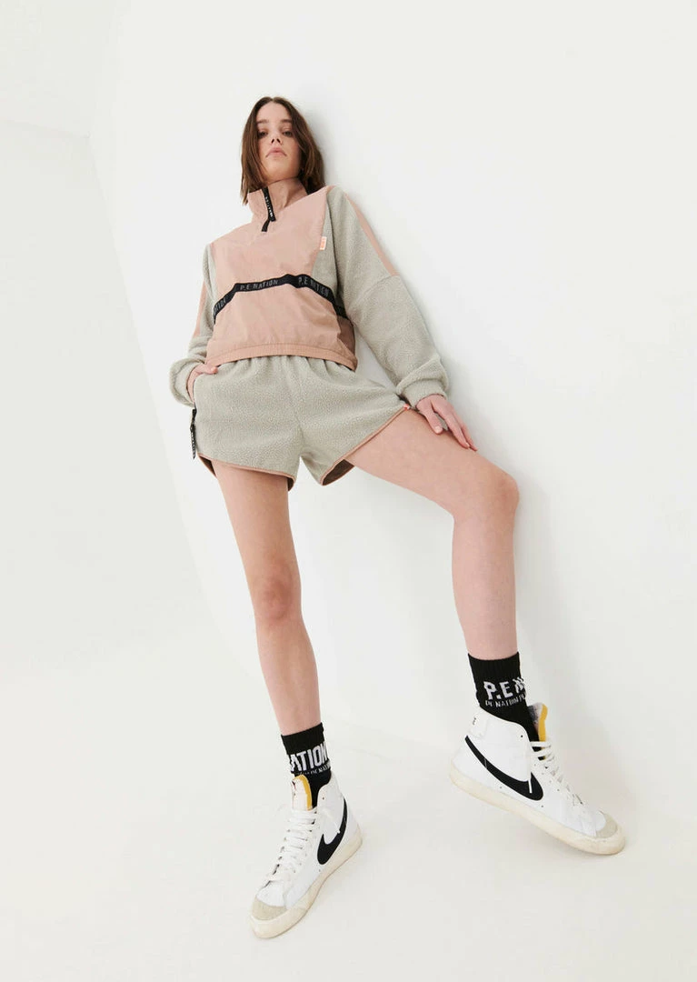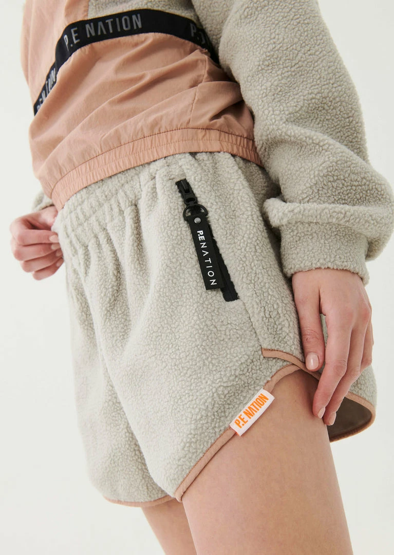 The Static Short in Silver comes as part of our Adventure Is An Attitude Collection. A super-soft midweight short in Sherpa-style fabrication, the Static Short is a statement off-duty leisure style to work into your everyday essentials wardrobe. Featuring a relaxed fit and easy elasticated waistband with internal fluro drawcord, the Static Short features a back pocket with power mesh lining, and two zippered pockets at front with P.E Nation branded zipper pullers. A neat fluro P.E Nation woven tag sits in the front hem for a classic P.E colour pop. Team it with the Superstar Tee or All Around Tank.