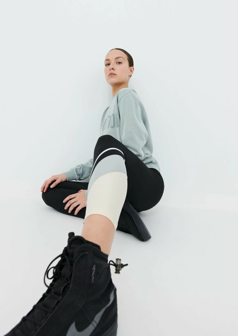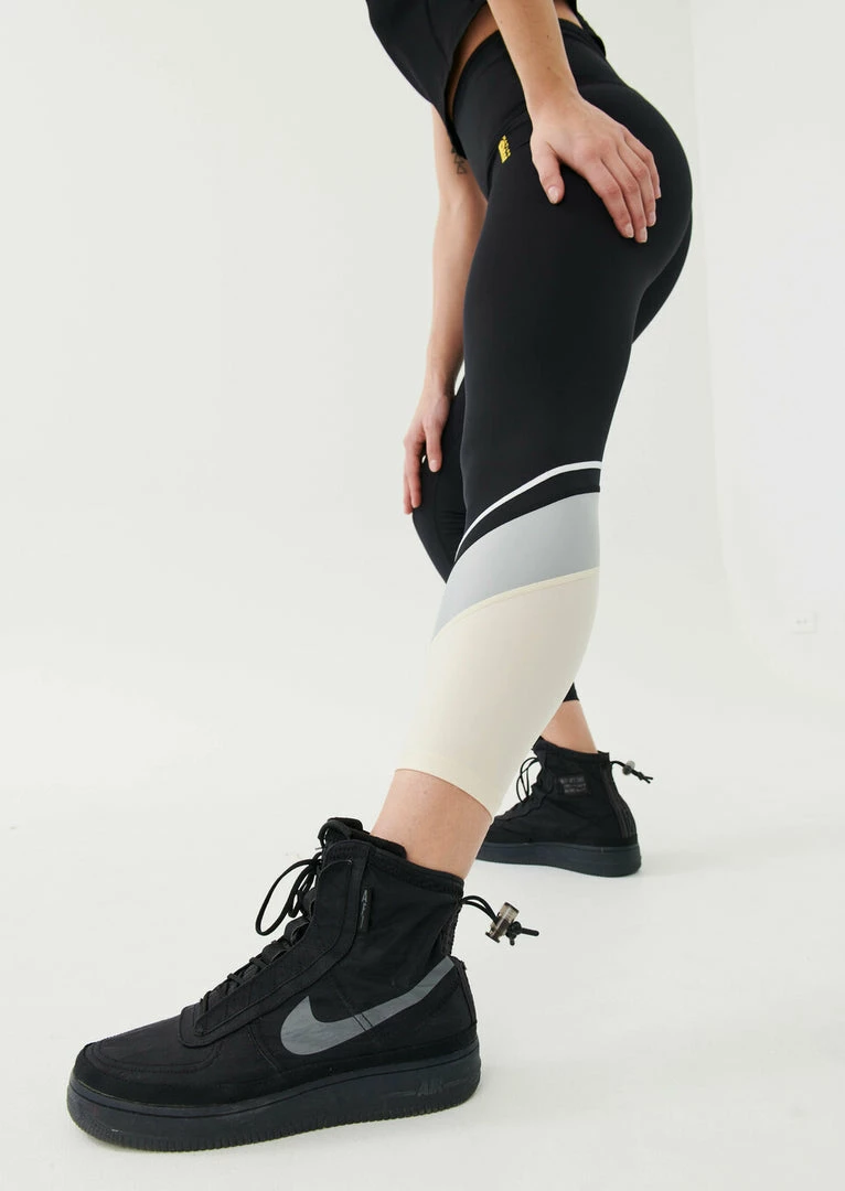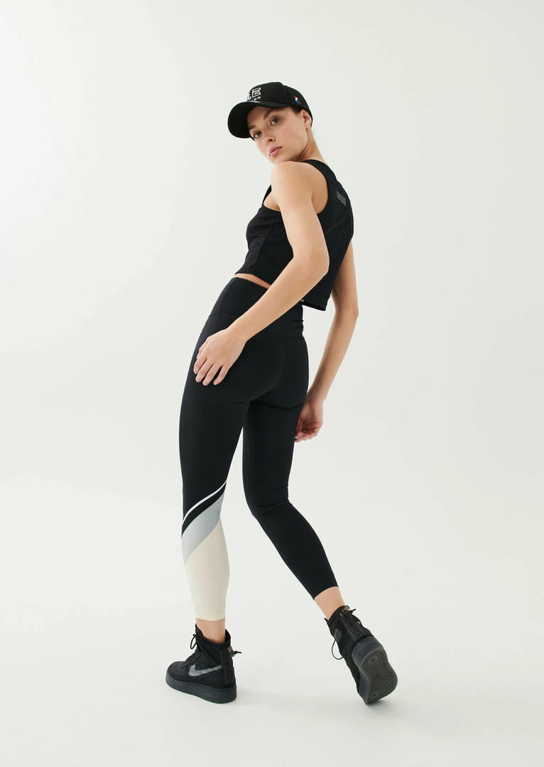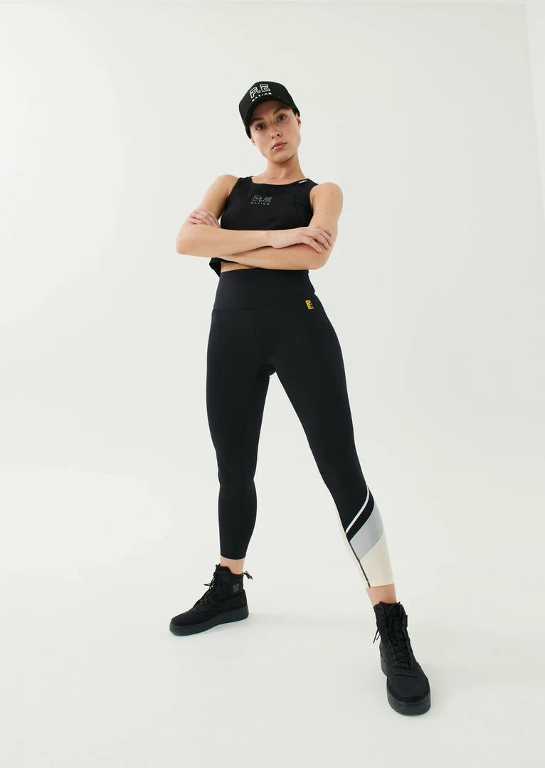 The Upperhand Legging in Grey comes as part of the Stand Tall, Together Collection. A high-rise, 7/8 length style cut from recycled fabrication for an elevated sustainable activewear choice, the Upperhand Legging features built-in waistband support and squat proof material to take you through mid-high intensity training sessions. A contrast diagonal colour-blocking panel on the lower leg and logo embroidery at the hip give it signature P.E appeal. Pair this one with the Post Game Tank or Fortify Sweat for a street-to-studio look.