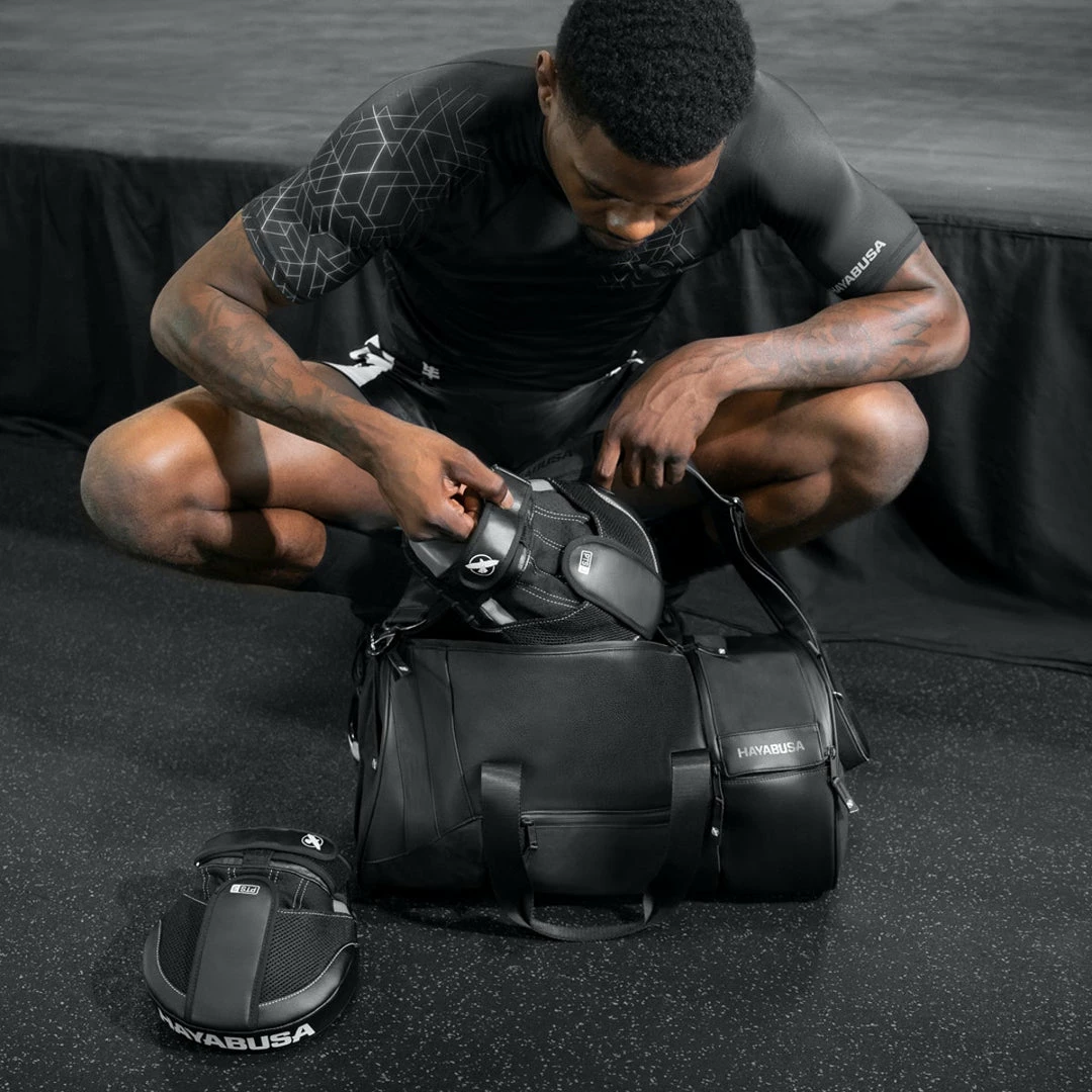 The Hayabusa Elite Duffle Bag is engineered specifically for boxers with a custom-made pocket built to house your gloves. Its spacious main compartment makes it easy to store all of your equipment while the various pouches and pockets are ideal for your hand wraps, mouthguard, and valuables. The hard-wearing, water-resistant exterior features heavy-duty nylon straps, premium zipper pulls, and a removable padded shoulder strap. Turn heads everywhere you go with the perfect boxing gym bag that’s made to last a lifetime.