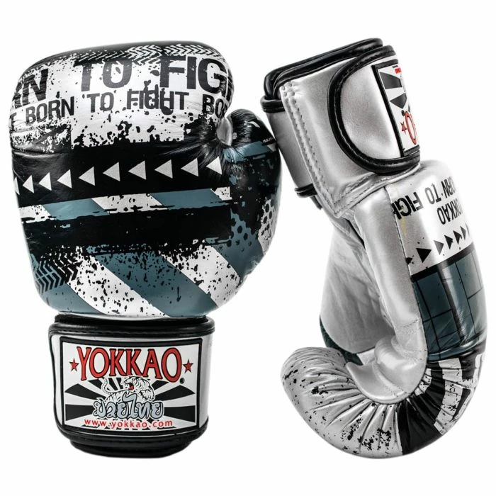 Yokkao HUSTLE SILVER/BLACK MUAY THAI GLOVES